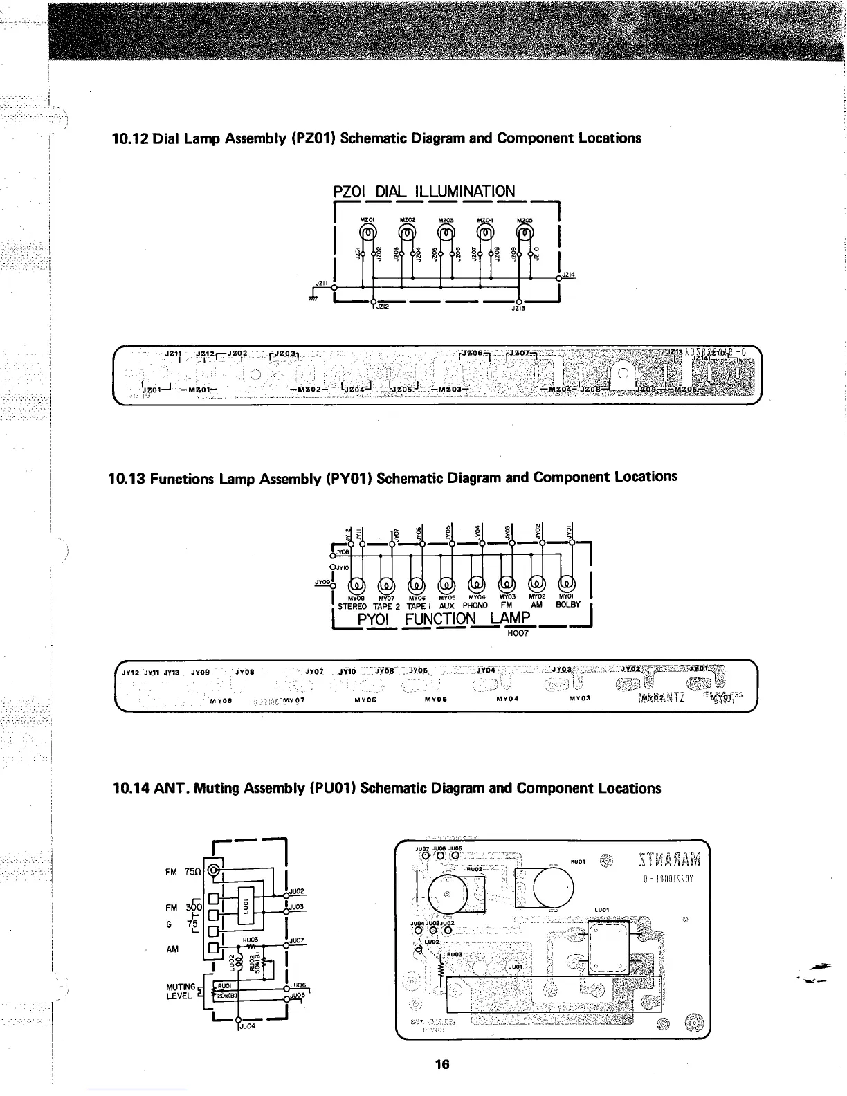 Marantz 2265 - Dial Lamp Assembly (PZ01); Functions Lamp Assembly (PY01); ANT. Muting Assembly (PU01)