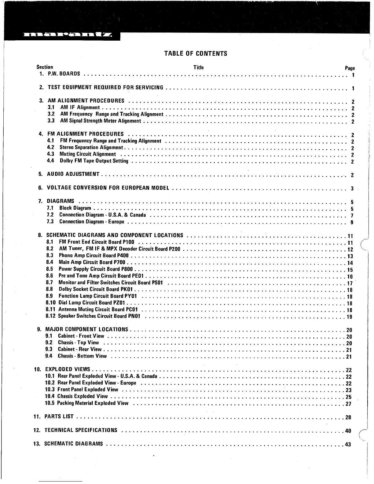 Marantz 2265B - Table of Contents