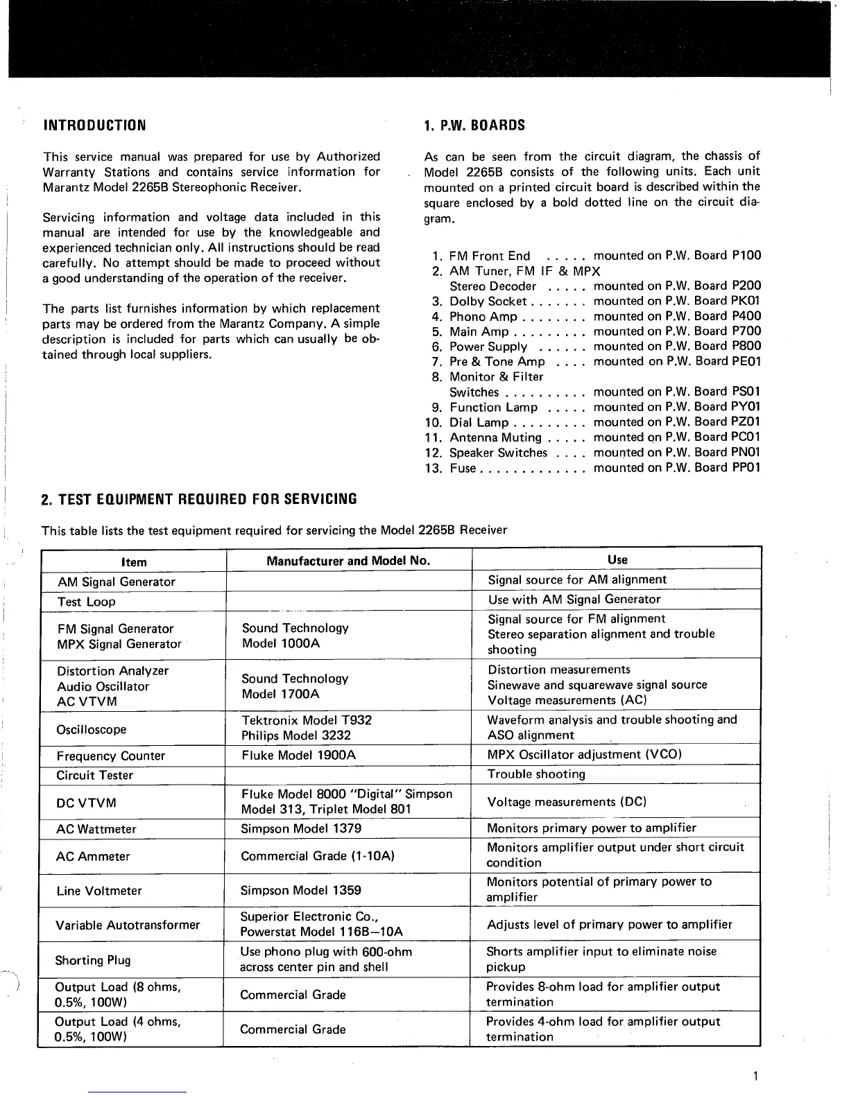 Marantz 2265B - P.W. Boards and Servicing Essentials; Printed Wiring Boards (P.W. Boards) Identification