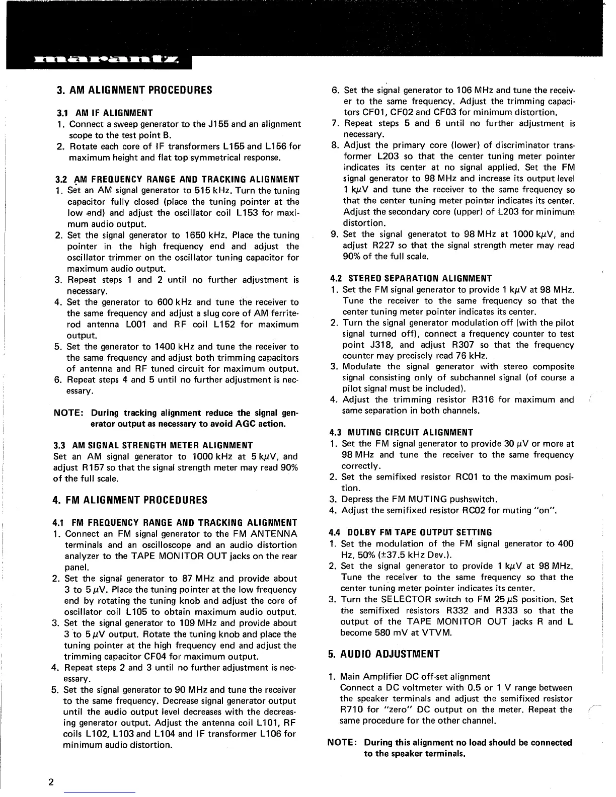 Marantz 2265B - Alignment Procedures; AM Alignment Procedures; FM Alignment Procedures