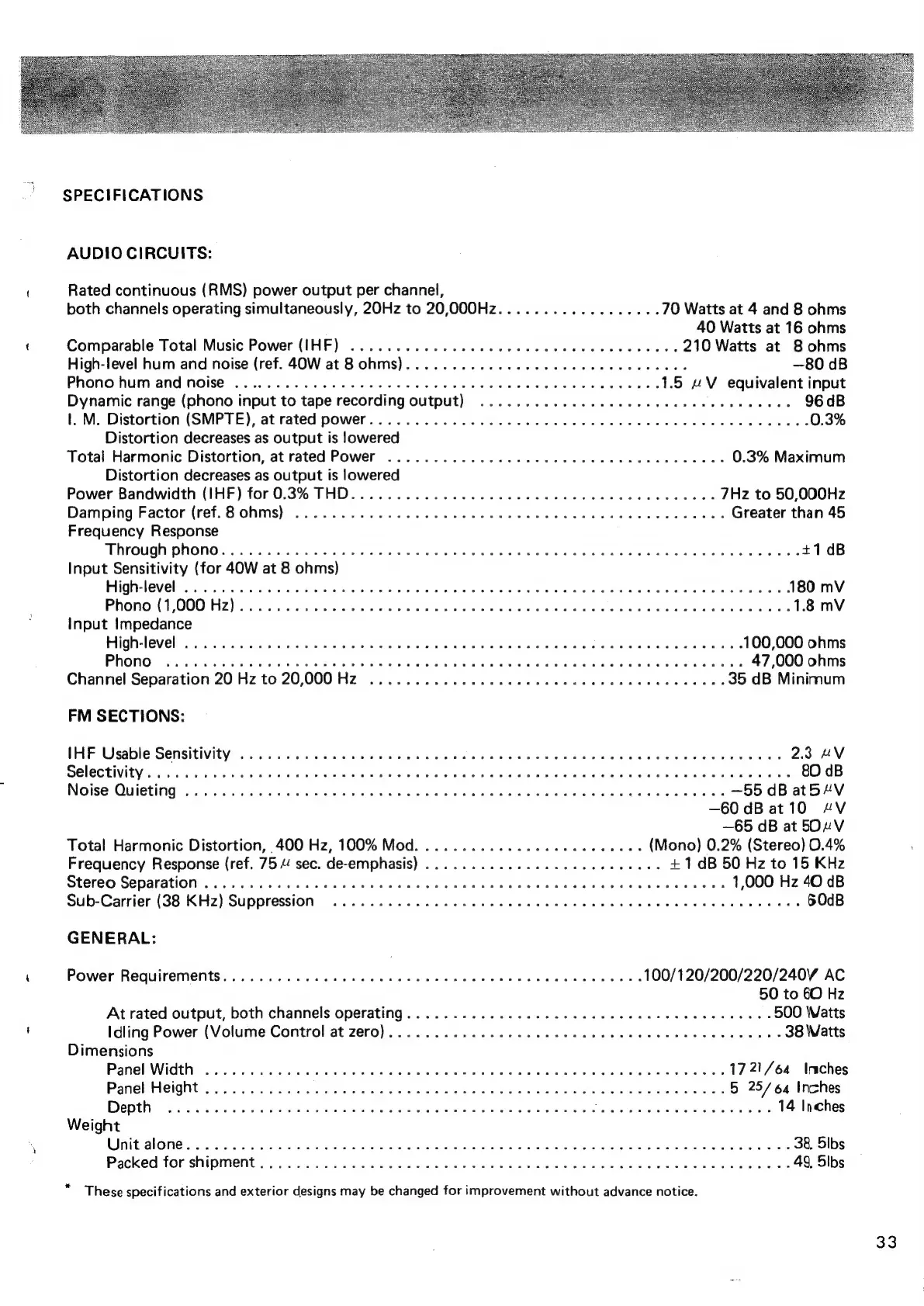 SPECIFICATIONS