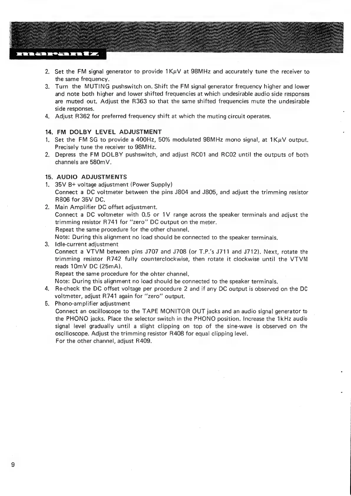 Marantz 2275 - FM Dolby Level and Audio Adjustments