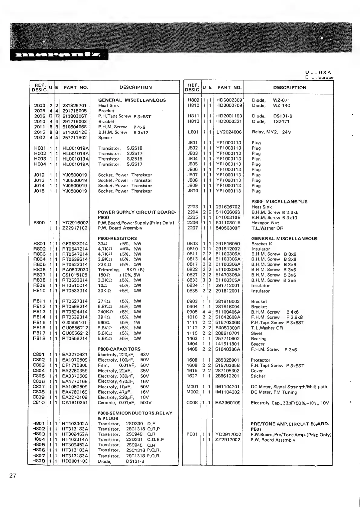 Marantz 2275 - Pre;Tone Amplifier (PE01) Components