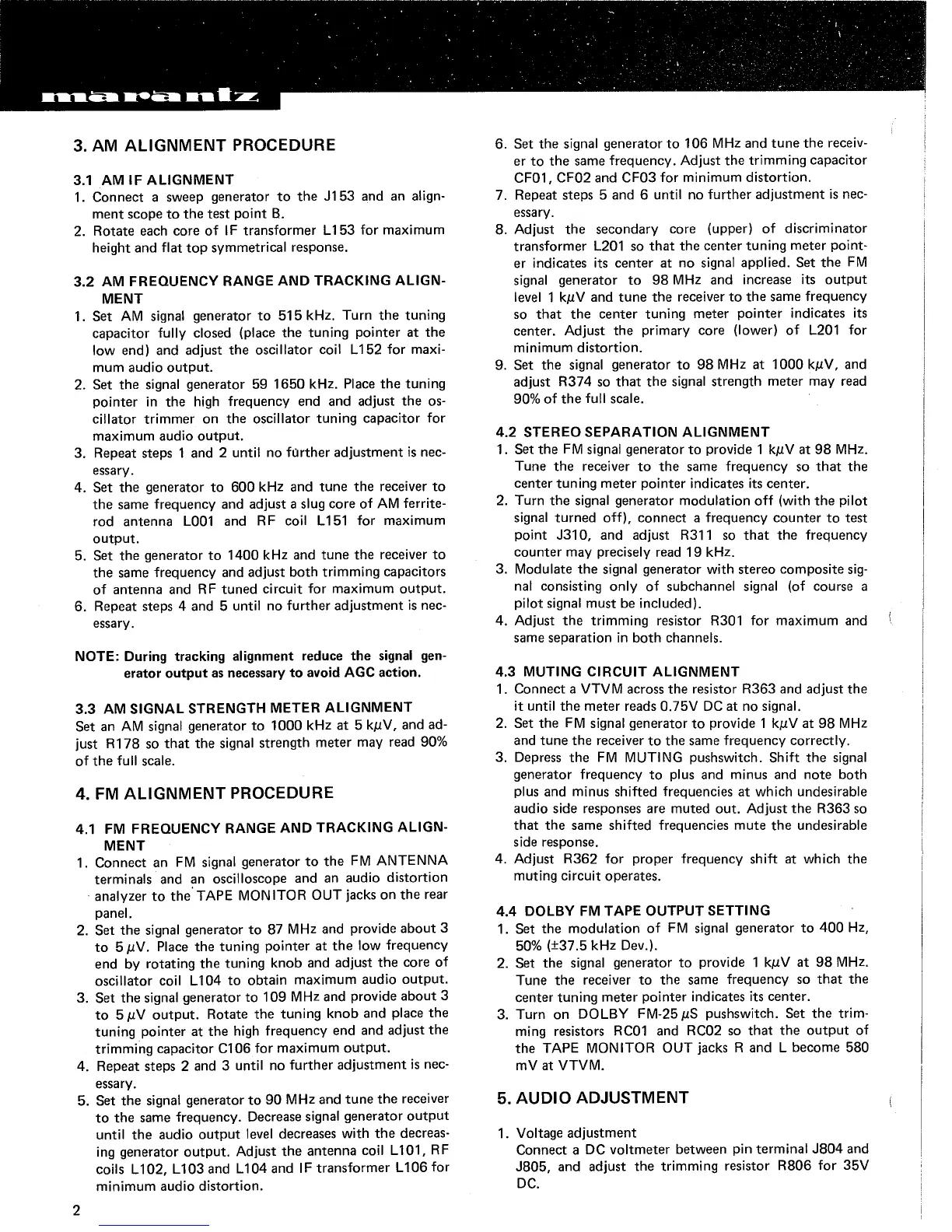 Marantz 2285 - AM Alignment Procedures; AM IF Alignment; AM Frequency Range and Tracking Alignment; AM Signal Strength Meter Alignment