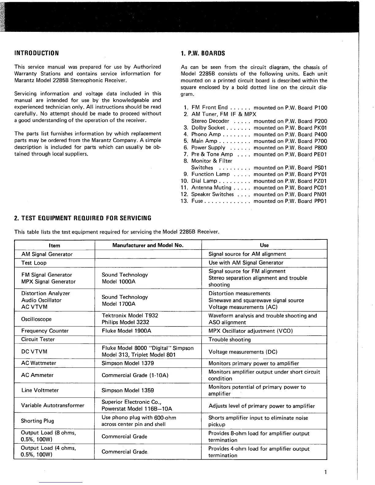 Marantz 2285B - Introduction; Printed Circuit Board Identification; Test Equipment Requirements