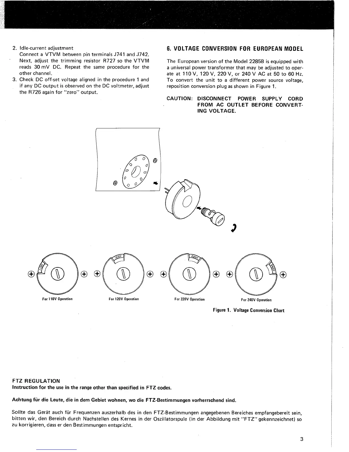 Marantz 2285B - Audio Adjustment Procedures; Main Amplifier DC Off-set Alignment; Idle-current Adjustment; European Model Voltage Conversion