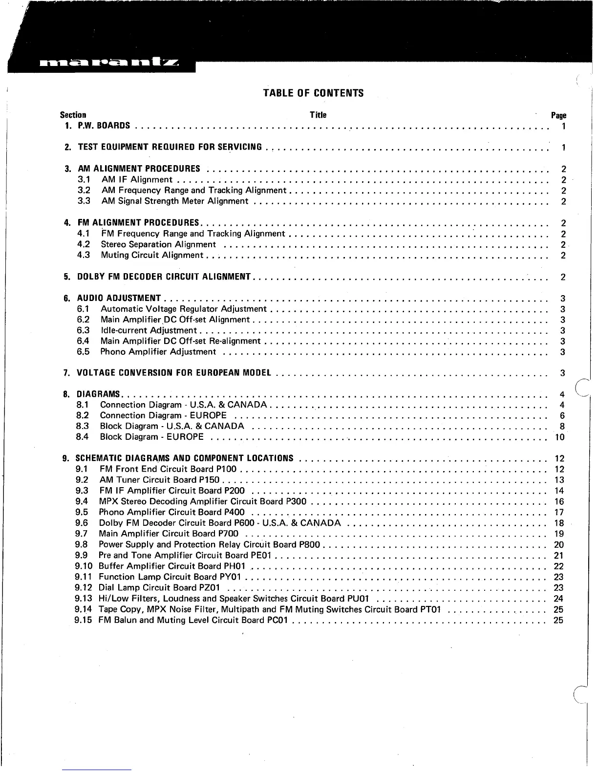 Marantz 2330 - Table of Contents