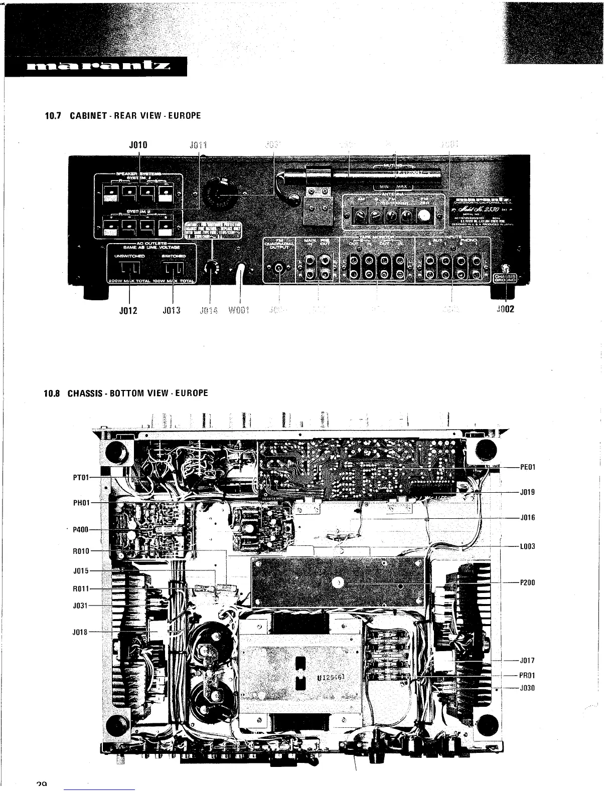 Marantz 2330 - CABINET - REAR VIEW - U.S.A. & CANADA; CHASSIS - BOTTOM VIEW - U.S.A.