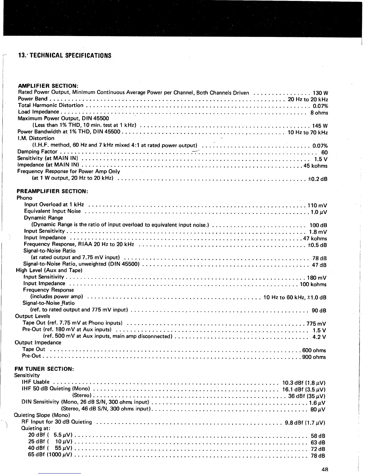 Marantz 2330 - Technical Specifications; AMPLIFIER AND PREAMPLIFIER SECTIONS
