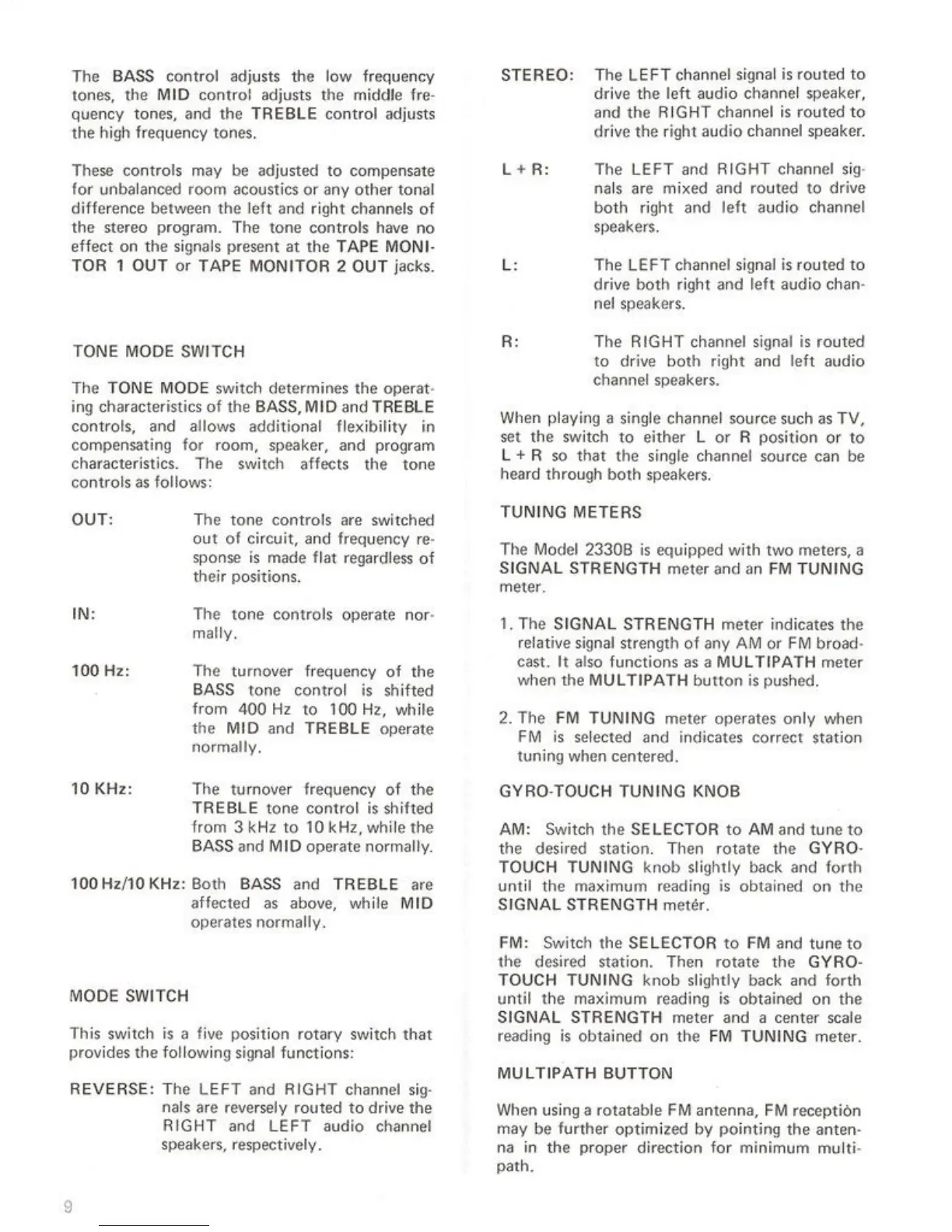 Marantz 2330B - TONE MODE SWITCH; MODE SWITCH; TUNING METERS; GYRO-TOUCH TUNING KNOB