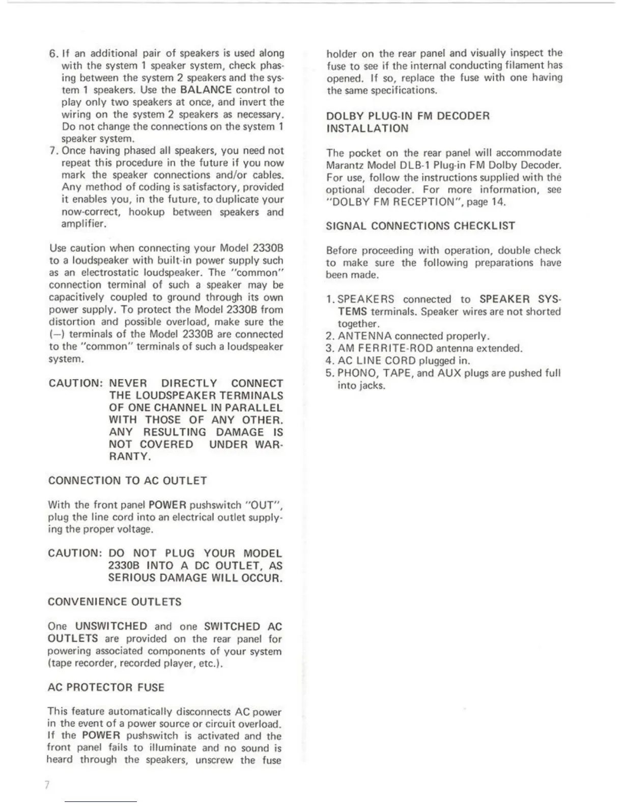 Marantz 2330B - SERVICE NOTES; FUSE REPLACEMENT; CLEANING; IN CASE OF DIFFICULTY