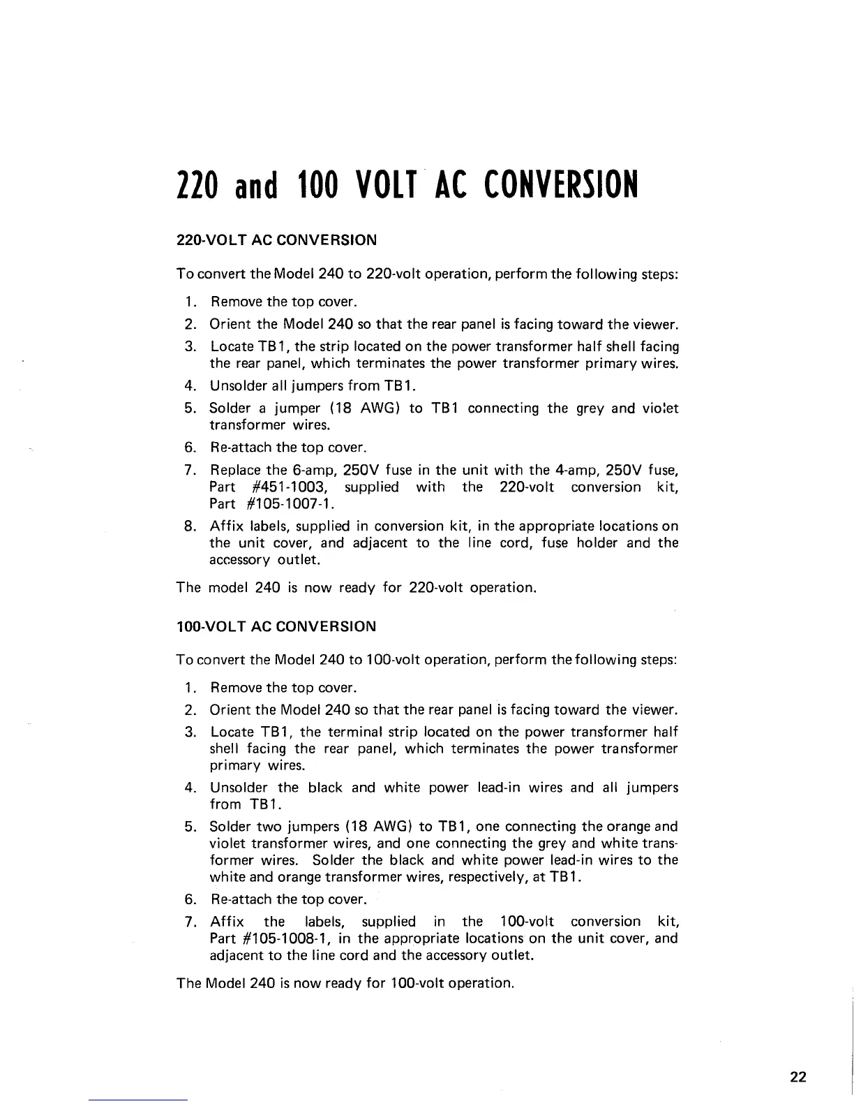 Marantz 240 - 220 And 100 Volt AC Conversion