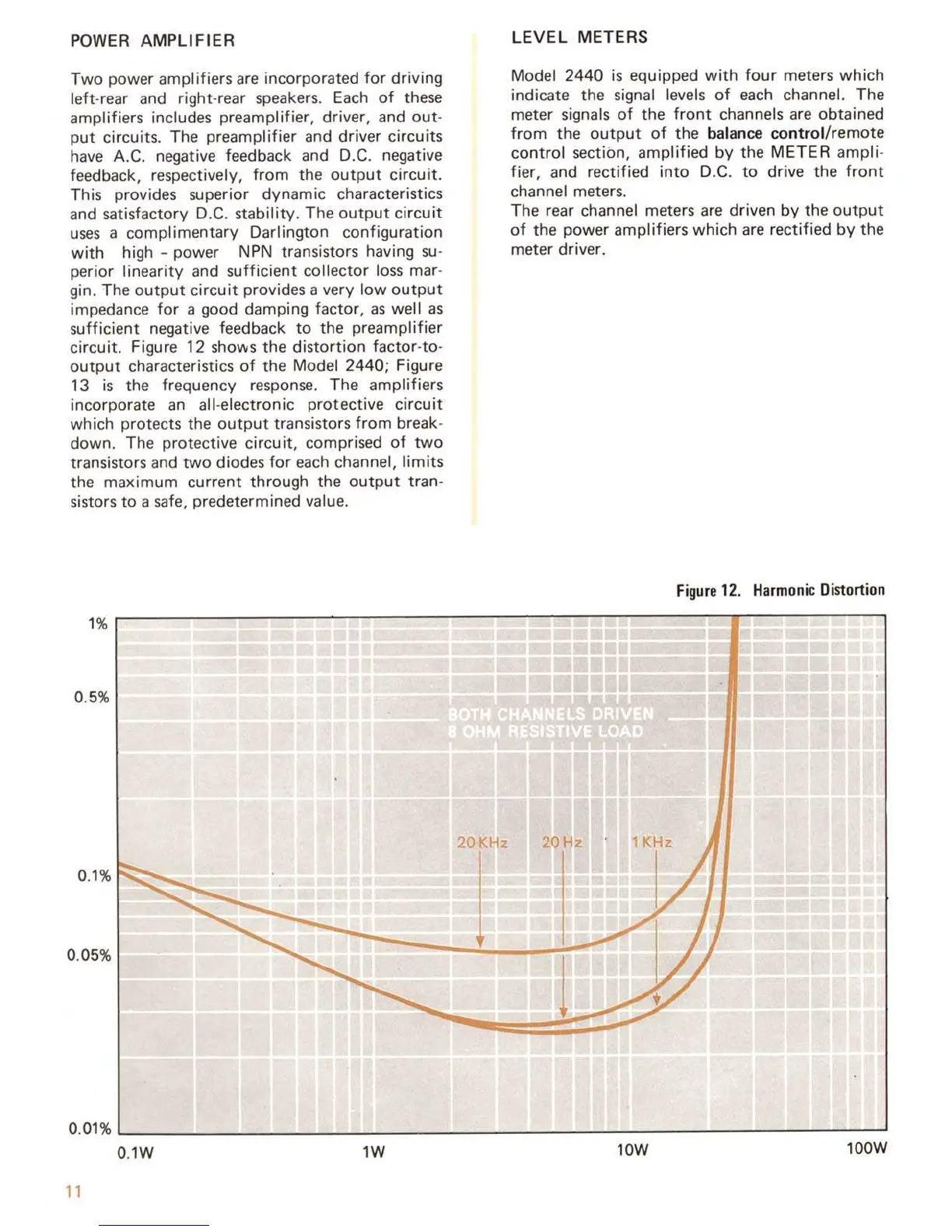 Marantz 2440 - Tone Control Circuit; Power Amplifier Description; Level Meters Function