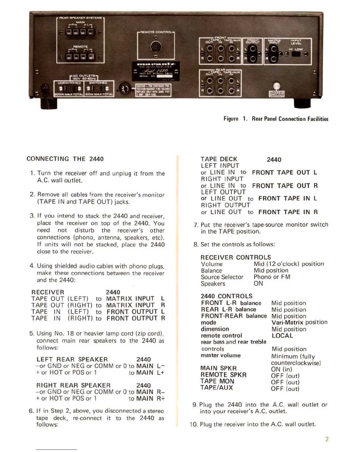 Marantz 2440 - Connecting the Marantz 2440