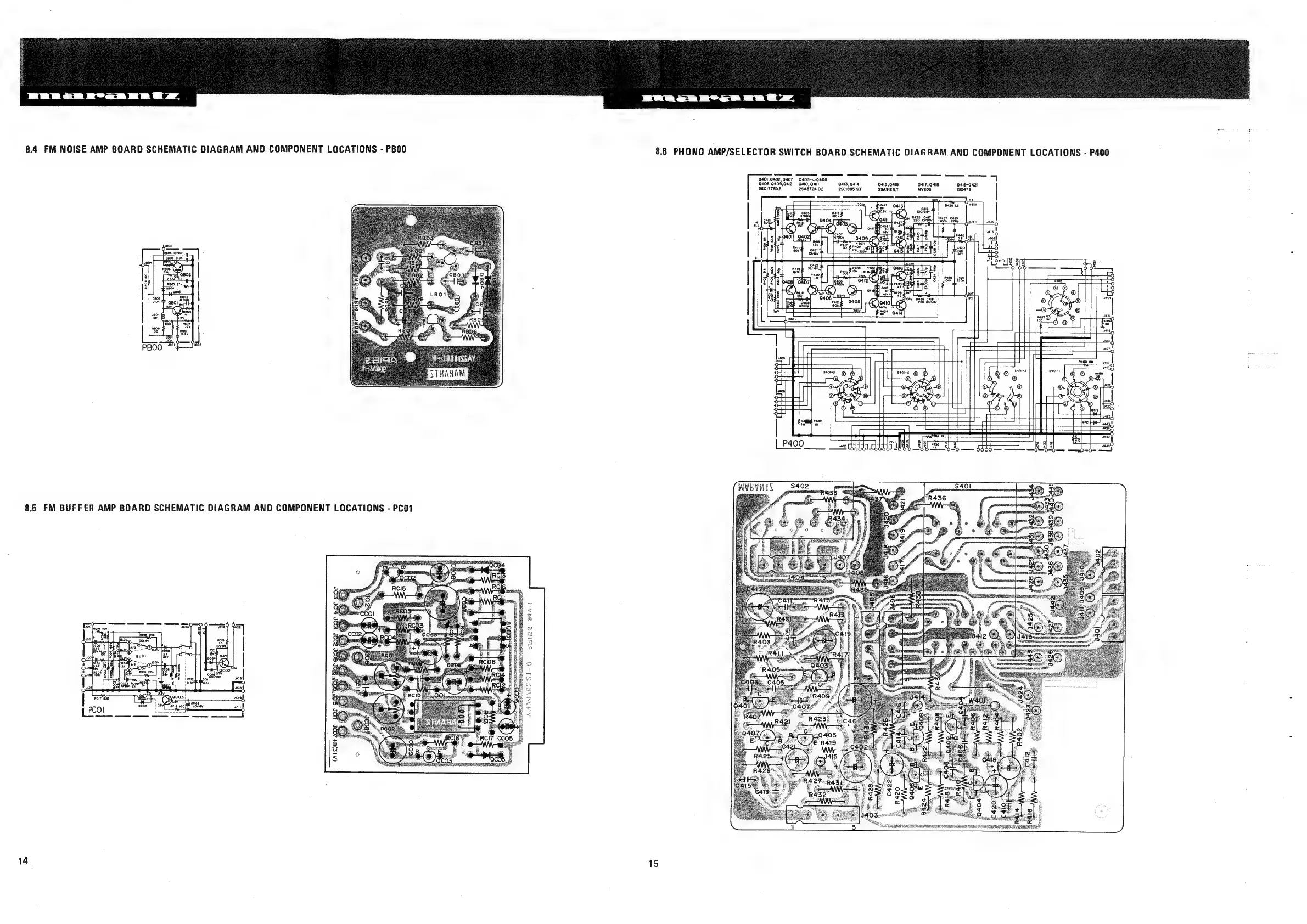 Marantz 2600 - FM Buffer Amp Board Schematic Diagram and Component Locations-PCO1; Phono Amp;Selector Switch Board Schematic Diagram and Component Locations-P400