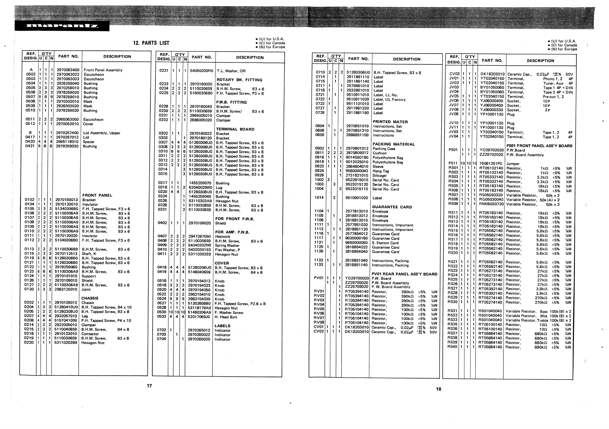 Marantz 3250 - Parts List