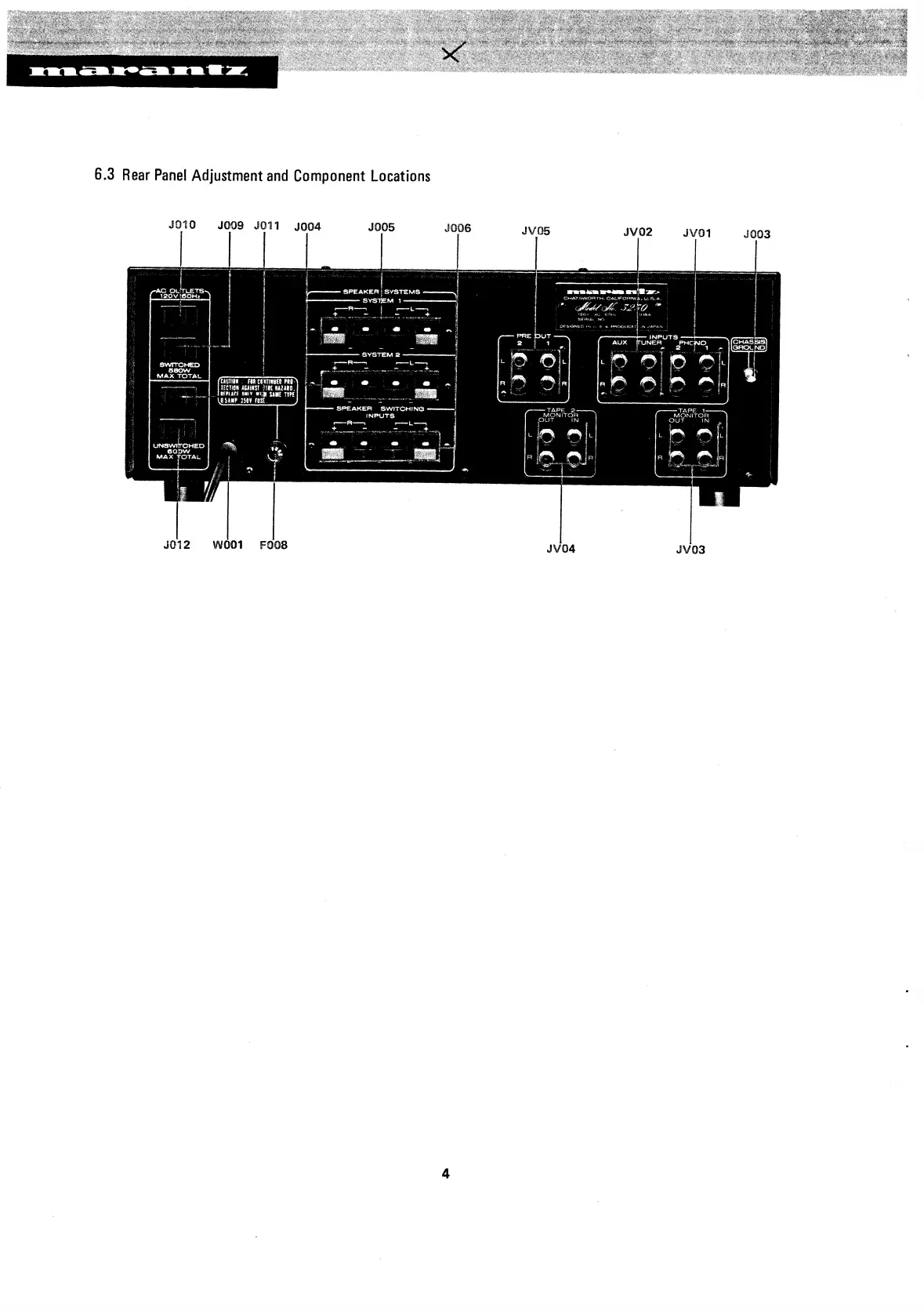 Marantz 3250 - Rear Panel Adjustment and Component Locations
