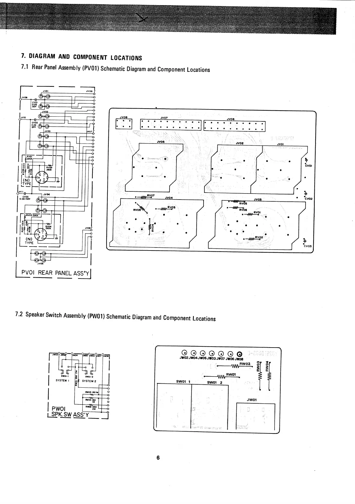 Marantz 3250 - Diagram and Component Locations; Rear Panel Assembly Schematic Diagram and Component Locations; Speaker Switch Assembly