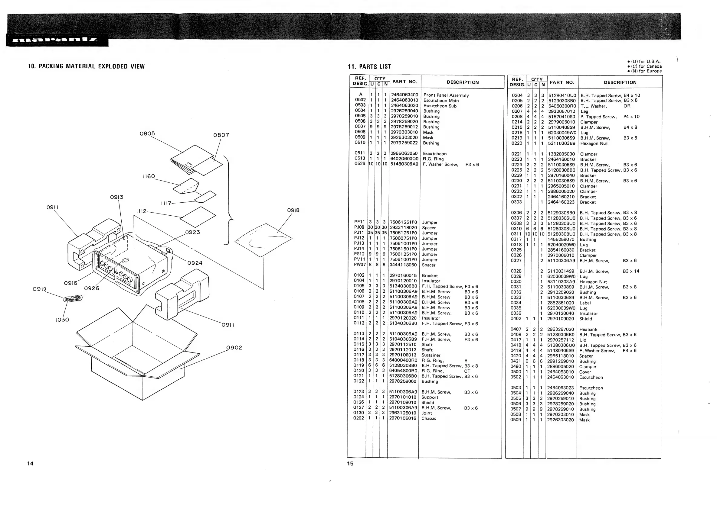Marantz 3250B - Packing Material Exploded View; Parts List