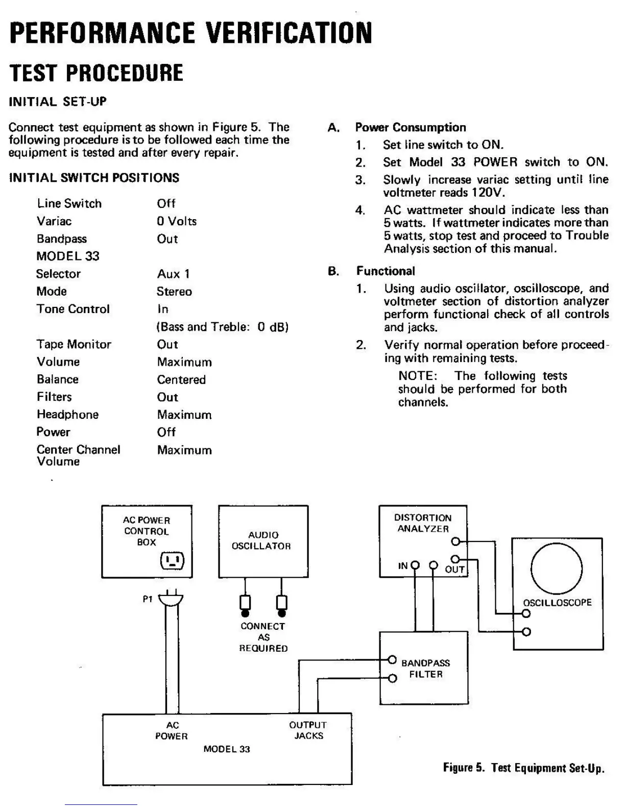 Marantz 33 - Performance Verification; Initial Set-Up; Power Consumption; Functional