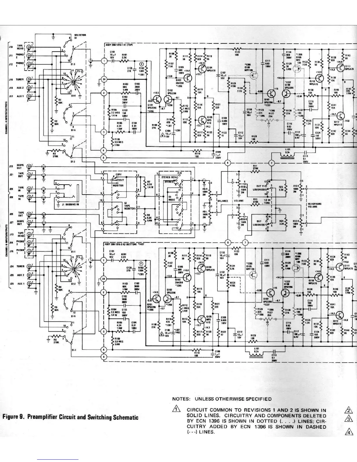 Marantz 33 - Figure 9. Preamplifier Circuit and Switching Schematic