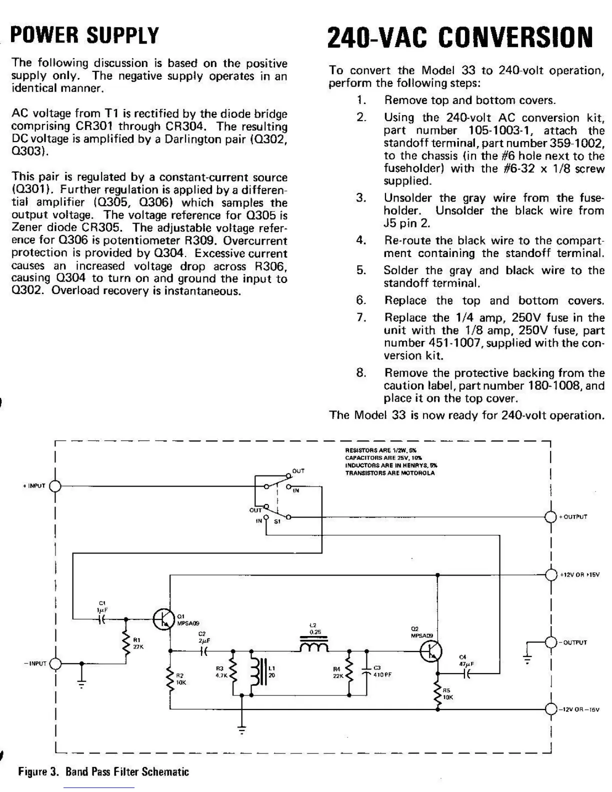 Marantz 33 - Power Supply; 240-VAC Conversion