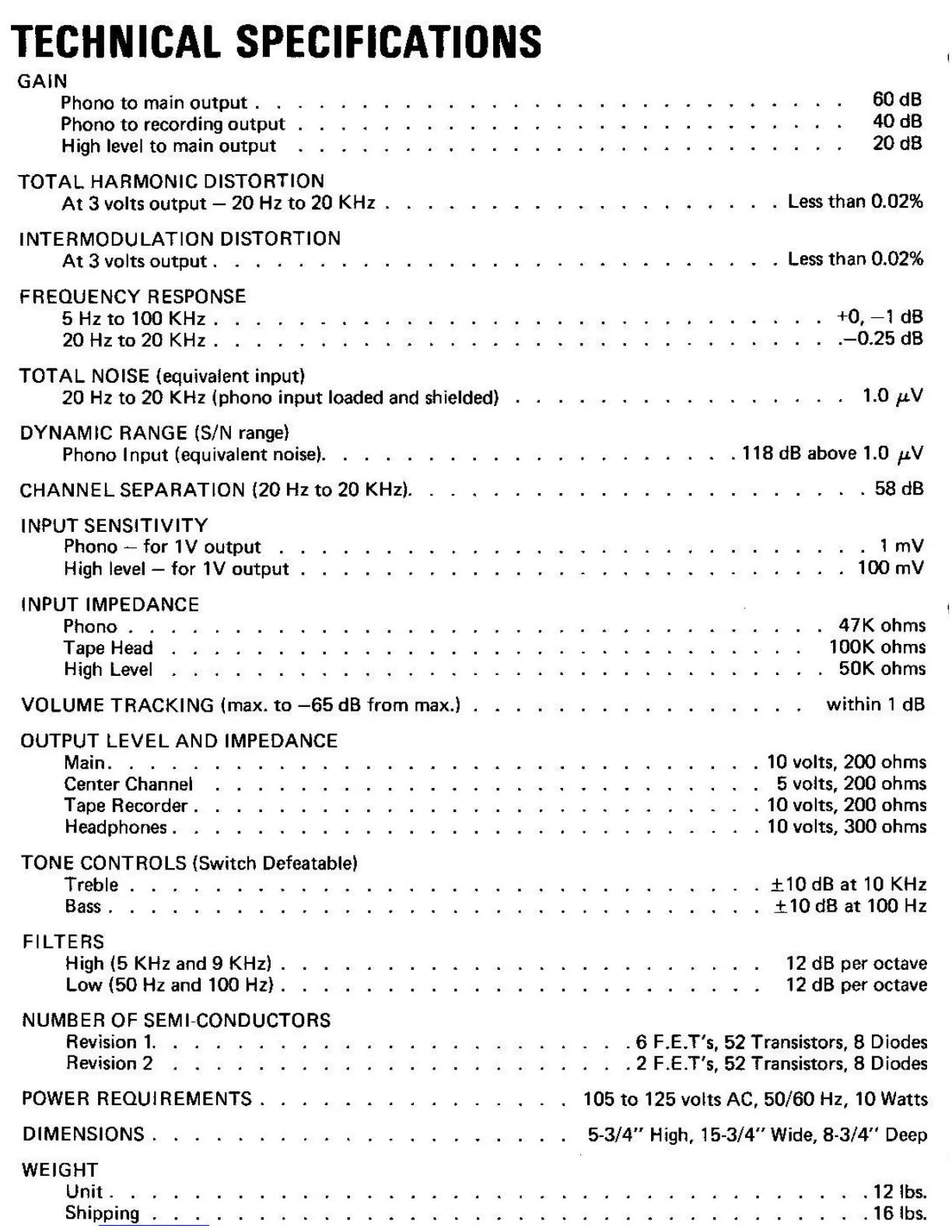 Marantz 33 - Technical Specifications