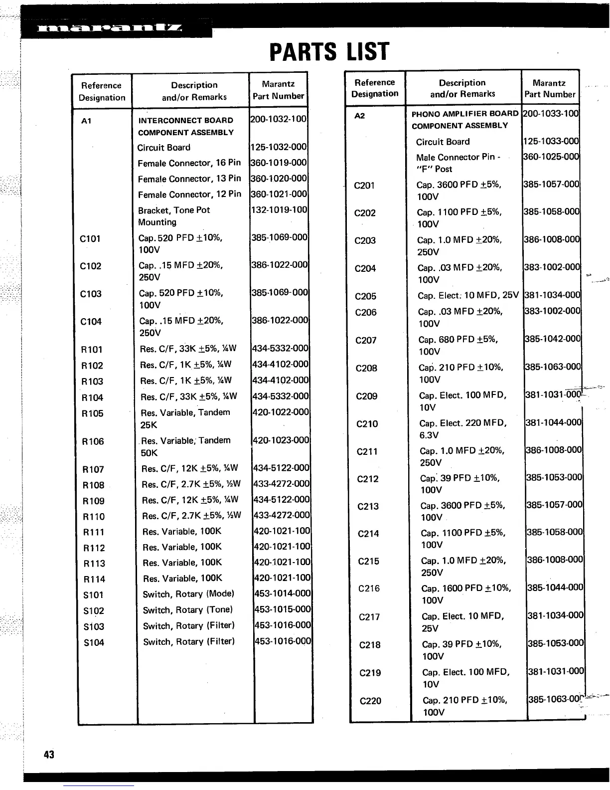 Marantz 3300 - Parts List
