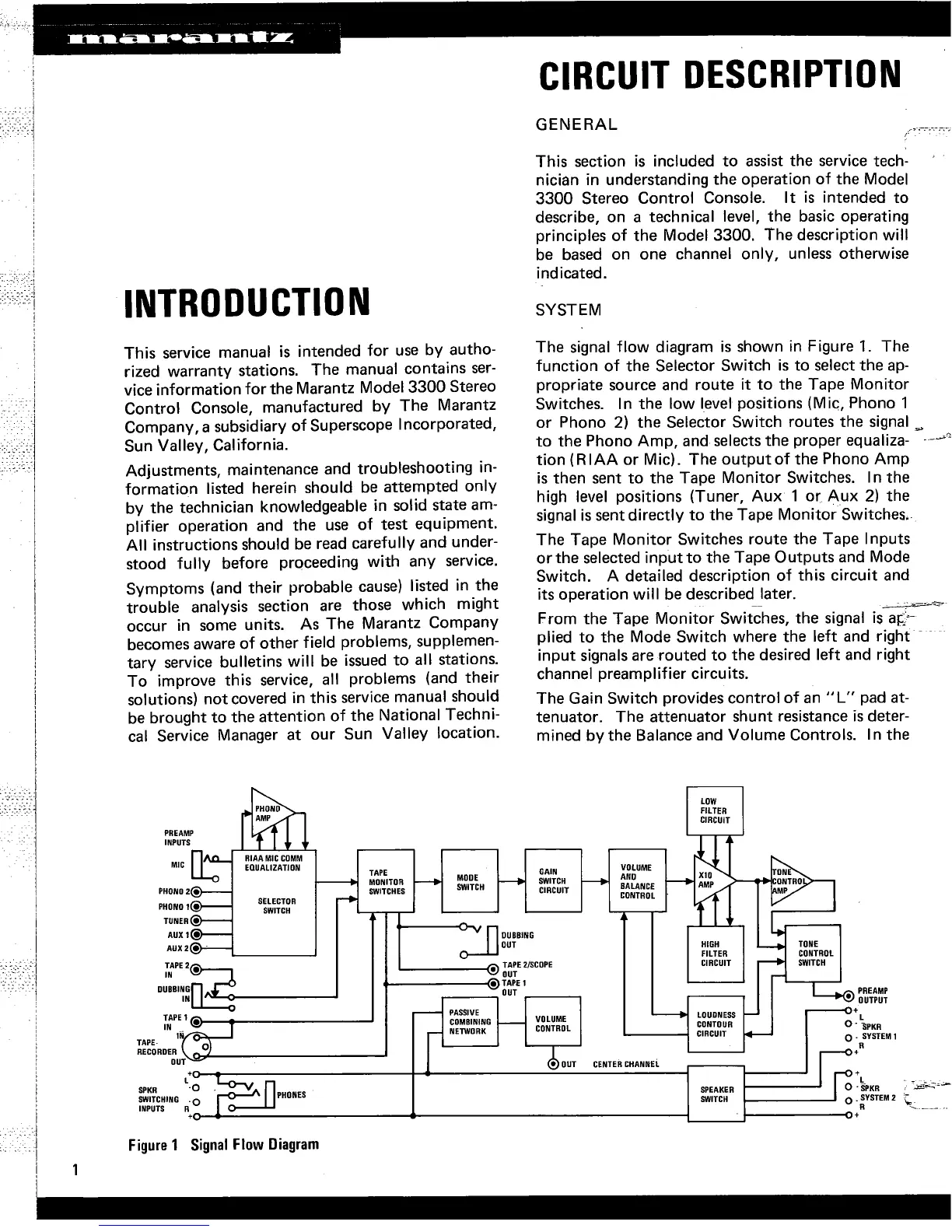 Marantz 3300 - Introduction to Marantz Model 3300 Service; Circuit Description Overview