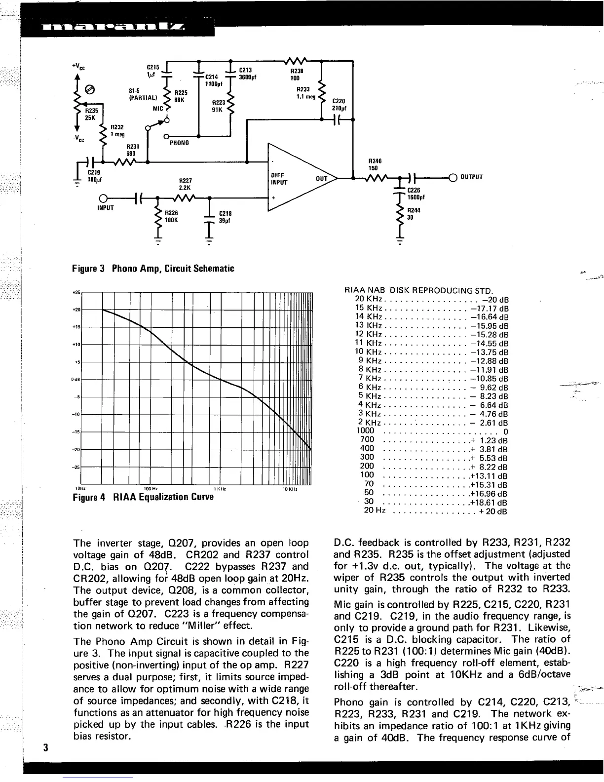Marantz 3300 - Circuit Schematic; RIAA Equalization Curve