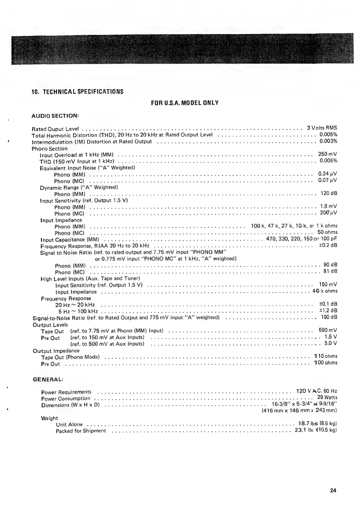 Marantz 3650 - Technical Specifications; Audio Section Specifications; General Unit Specifications
