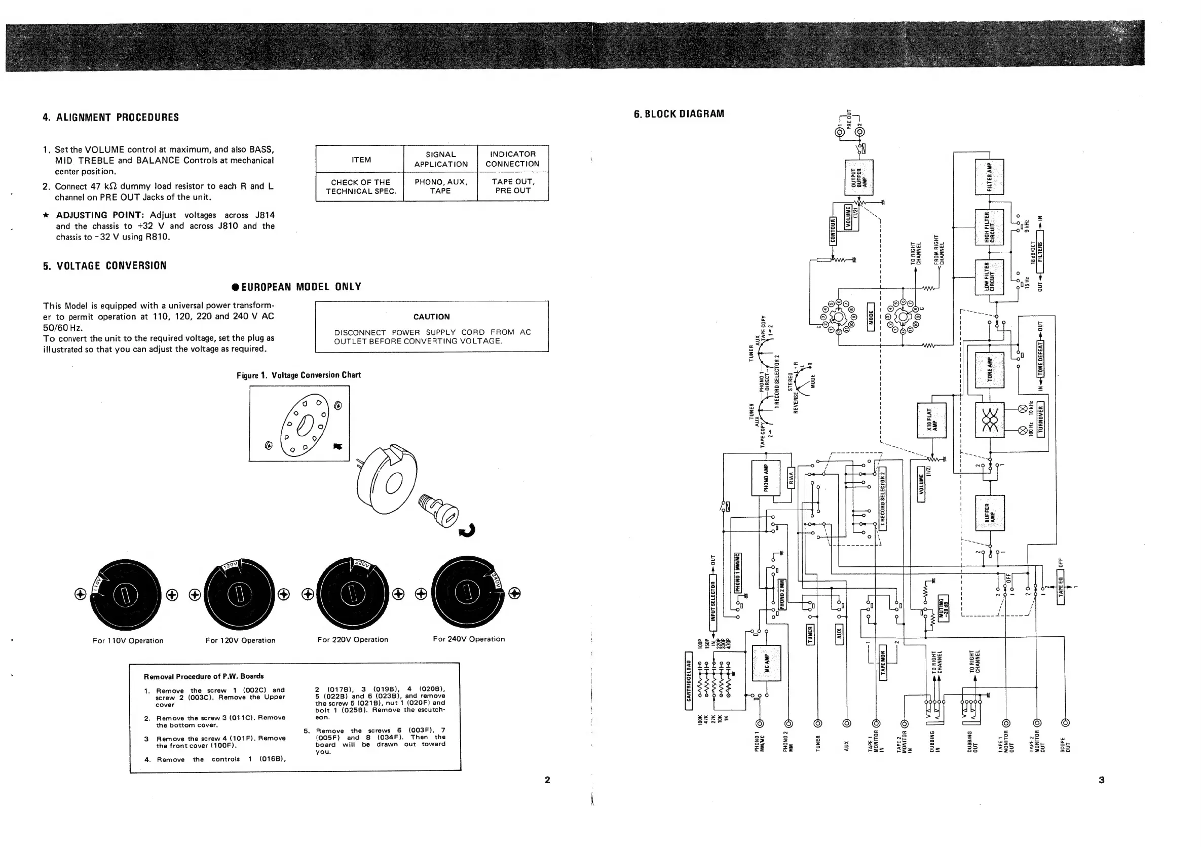 Marantz 3650 - Alignment Procedures; Voltage Conversion Guide; System Block Diagram