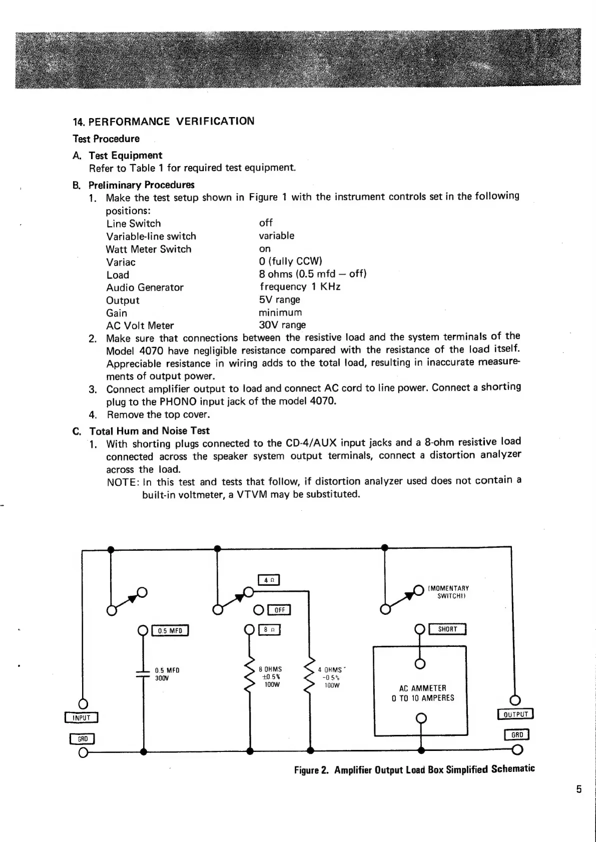 Marantz 4070 - Performance Verification; Test Setup and Preliminary Steps; Total Hum and Noise Measurement