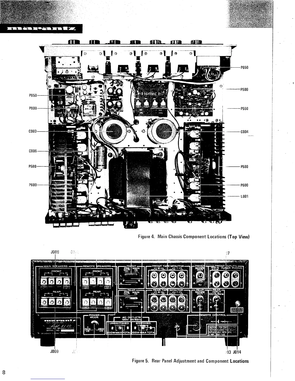 Marantz 4140 - Main Chassis Component Locations; Rear Panel Adjustment and Component Locations