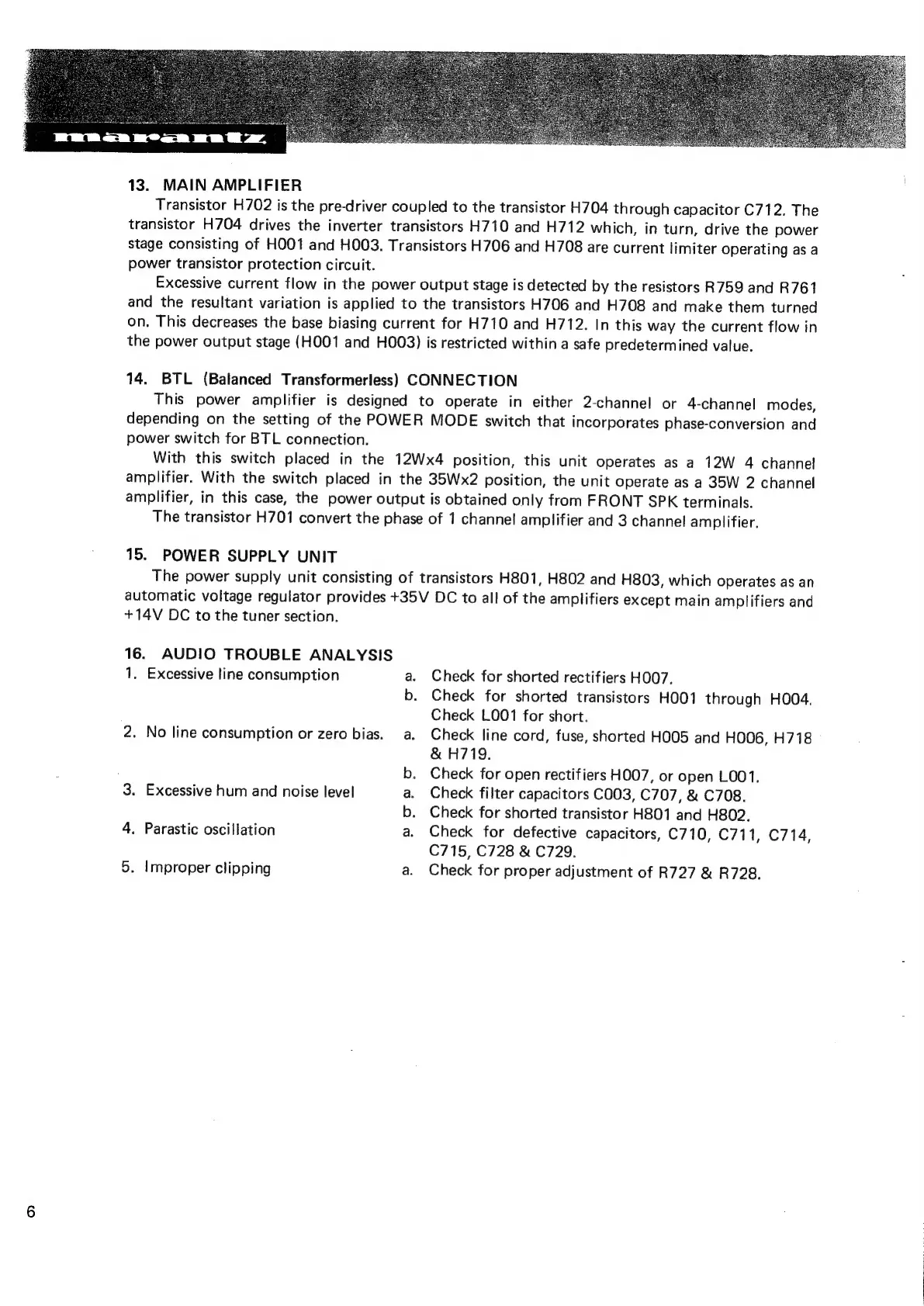 Marantz 4230 - Main Amplifier; BTL Connection; Power Supply Unit; Audio Trouble Analysis