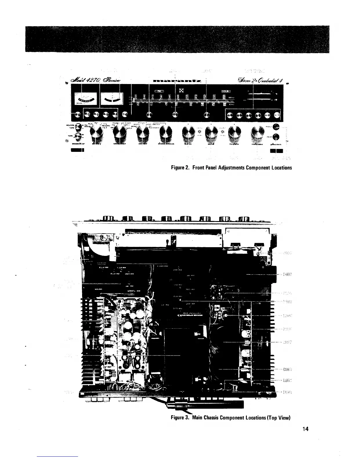 Marantz 4270 - Front Panel Adjustments Component Locations; Main Chassis Component Locations (Top View)