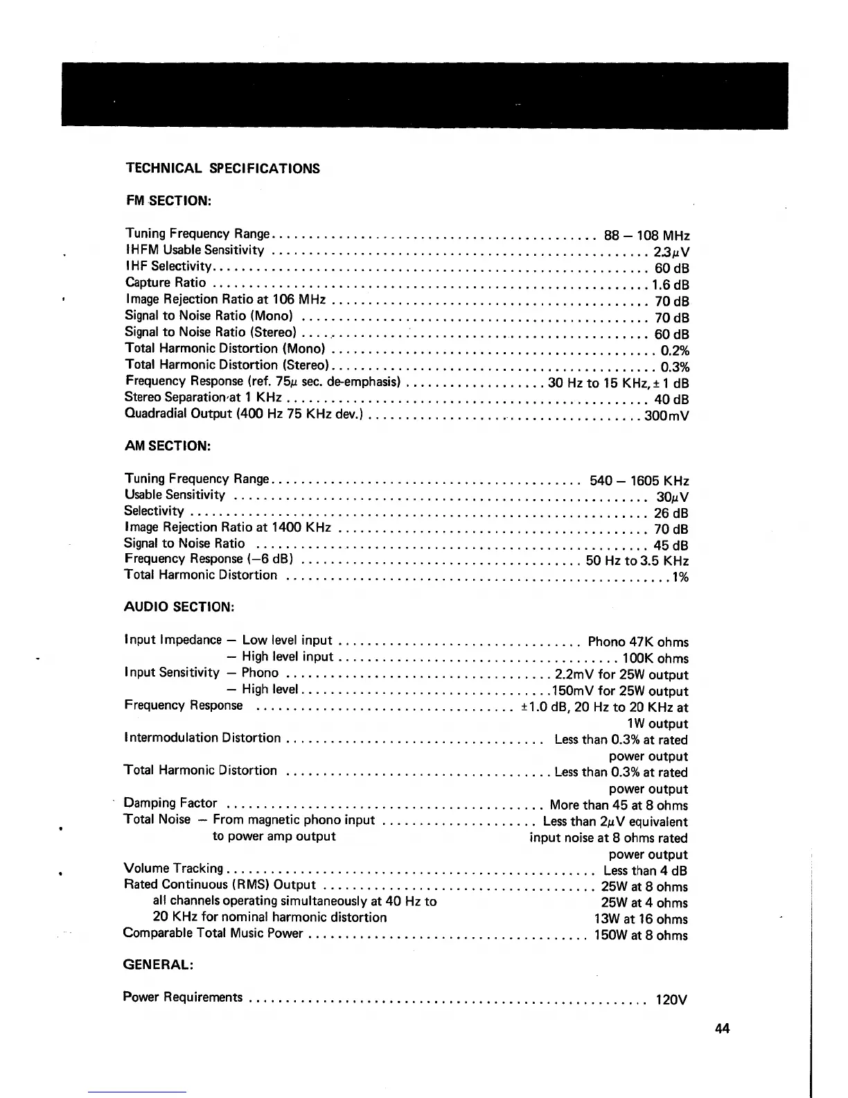 Marantz 4270 - AM Section Specifications; Audio Section Specifications