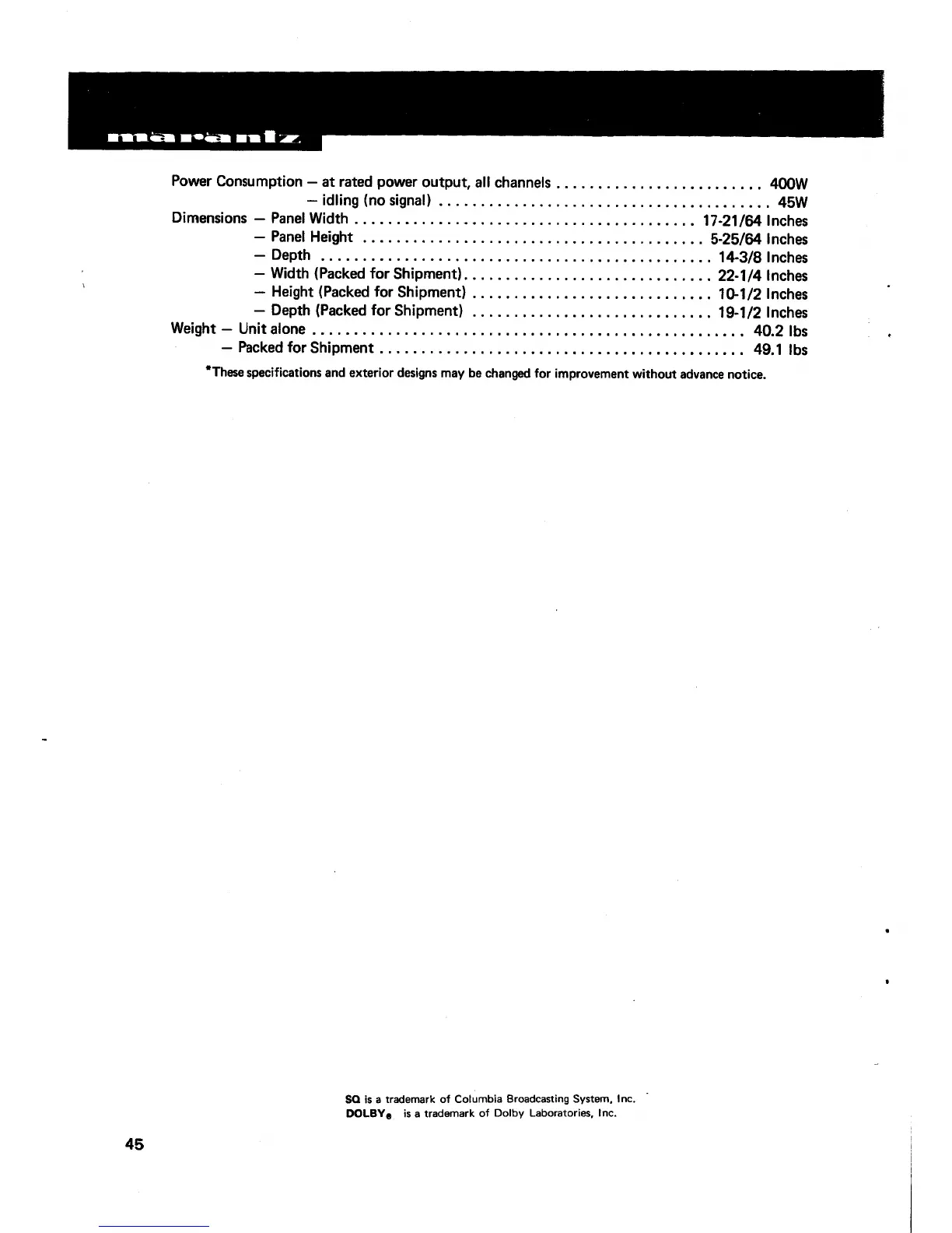 Marantz 4270 - General Specifications