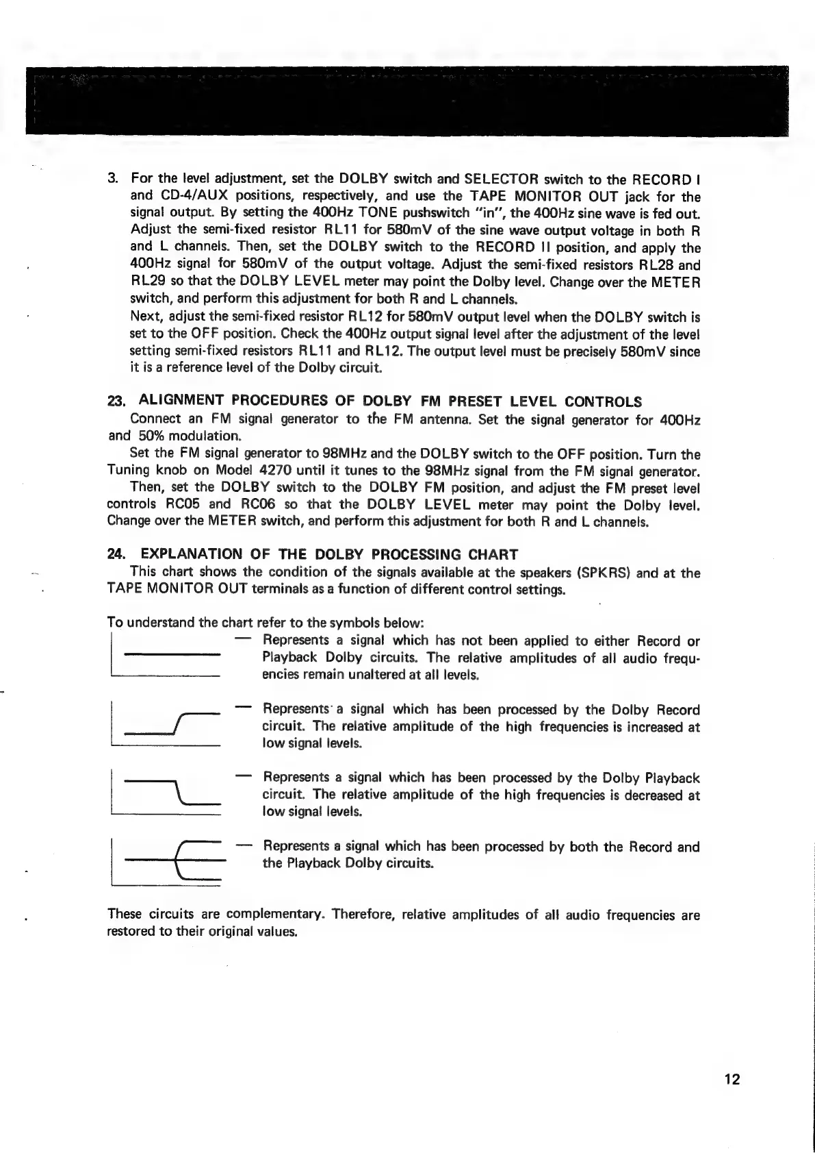Marantz 4270 - Dolby FM Preset Level Controls Alignment