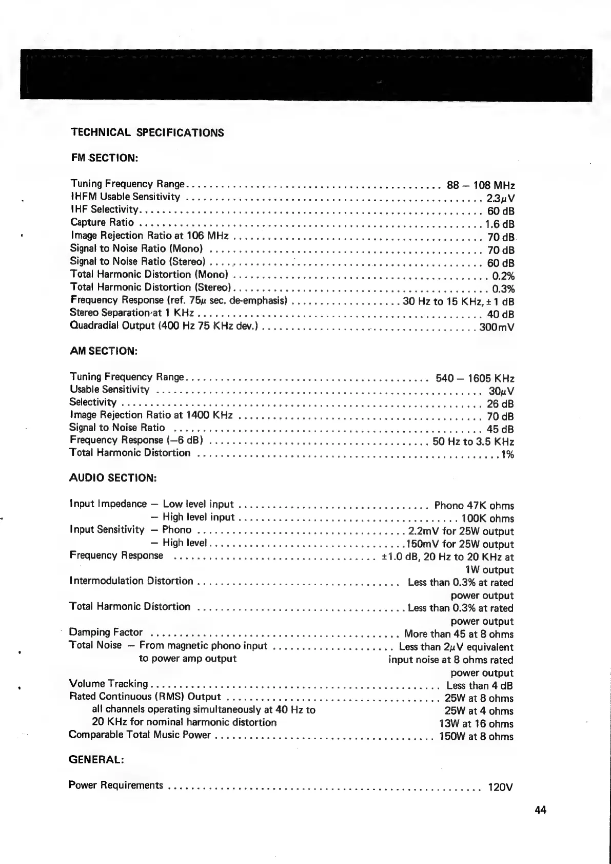Marantz 4270 - AM Section Specifications; Audio Section Specifications