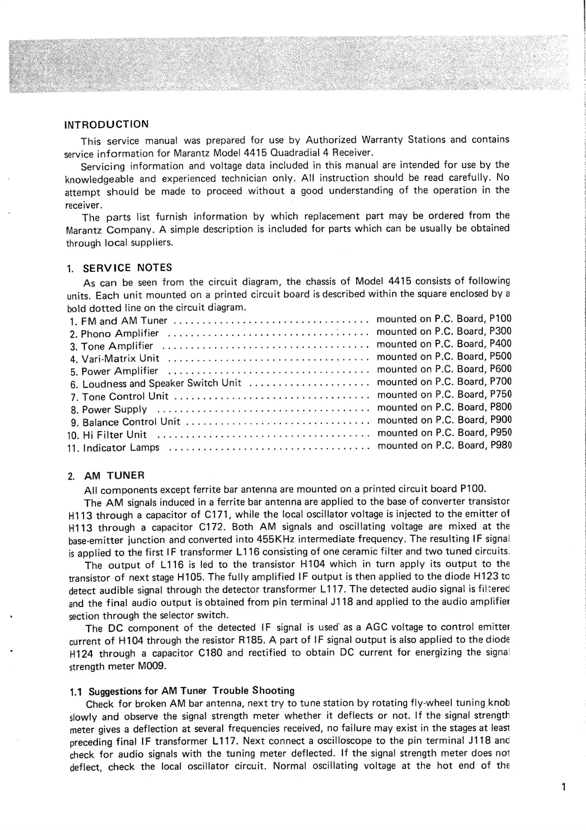 Marantz 4415 - INTRODUCTION TO MARANTZ 4415 RECEIVER; SERVICE NOTES; AM TUNER OPERATION AND TROUBLESHOOTING