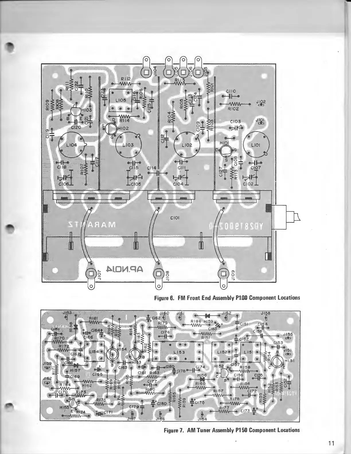 Marantz 4430 - FM Front End Assembly P100 Component Locations; AM Tuner Assembly P150 Component Locations