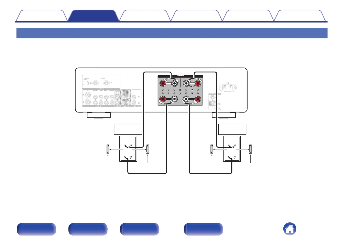 When bi-wiring with bi-wireable speakers, connect the mid and high range terminals to SPEAKERS B (or SPEAKERS A), the low range terminals to