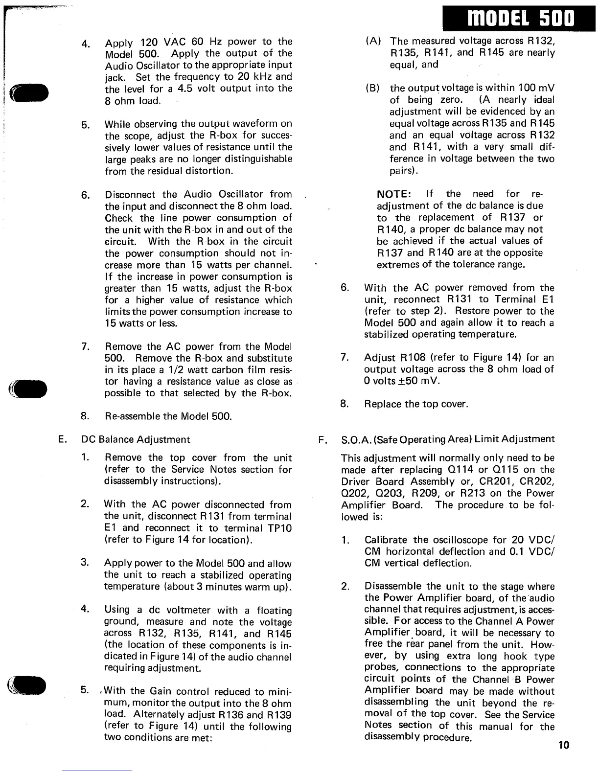 Marantz 500 - Preparation for Adjustments; S.O.A. Limit Adjustment Procedure