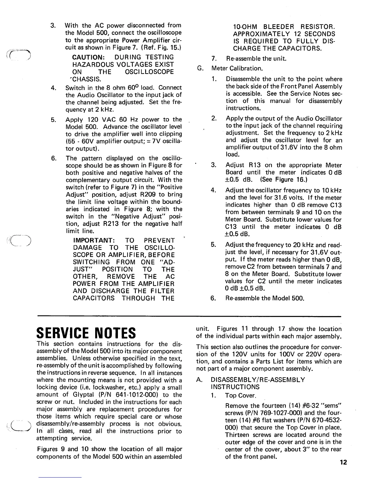 Marantz 500 - Meter Calibration and Service Notes; Meter Calibration Procedure; Marantz Model 500 Service Notes