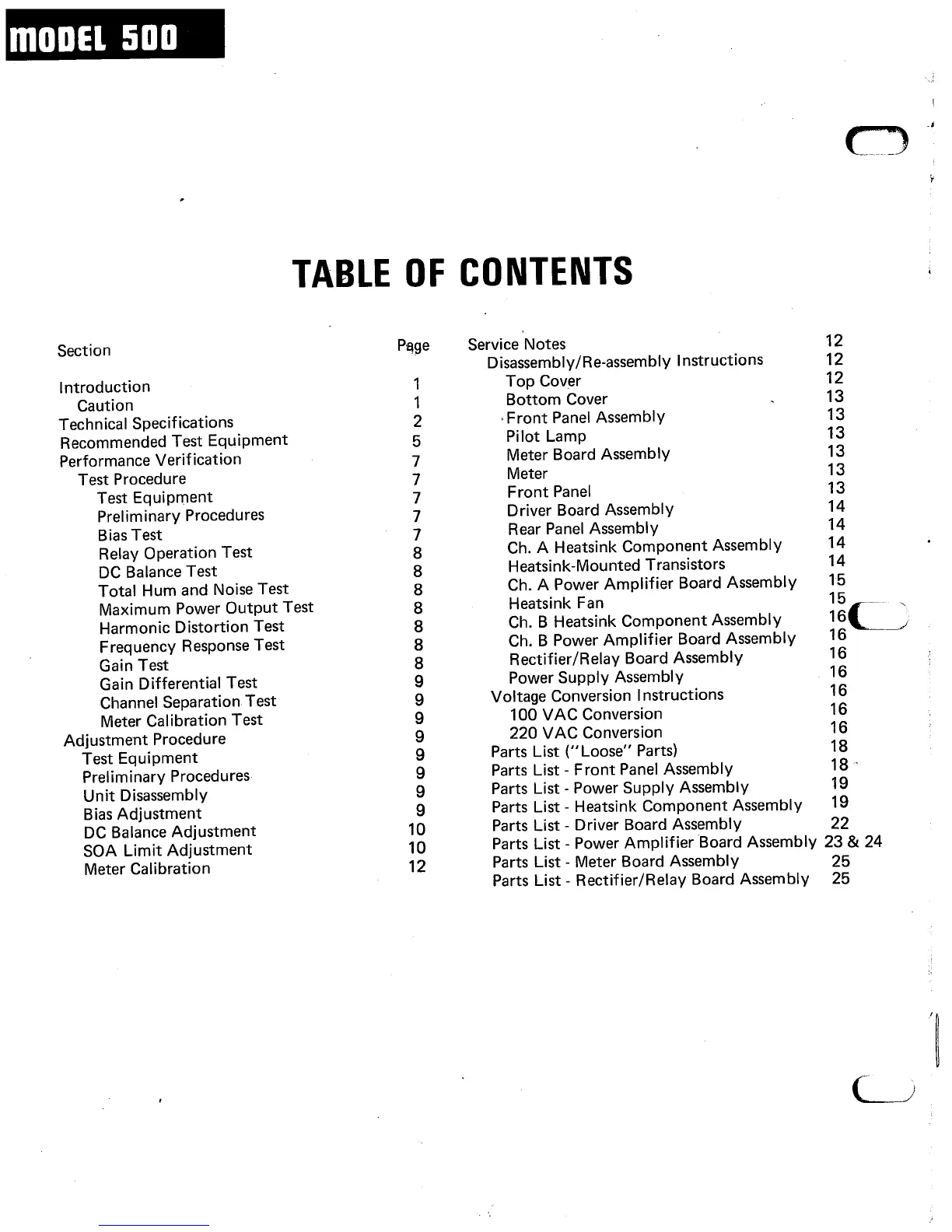 Marantz 500 - Table of Contents