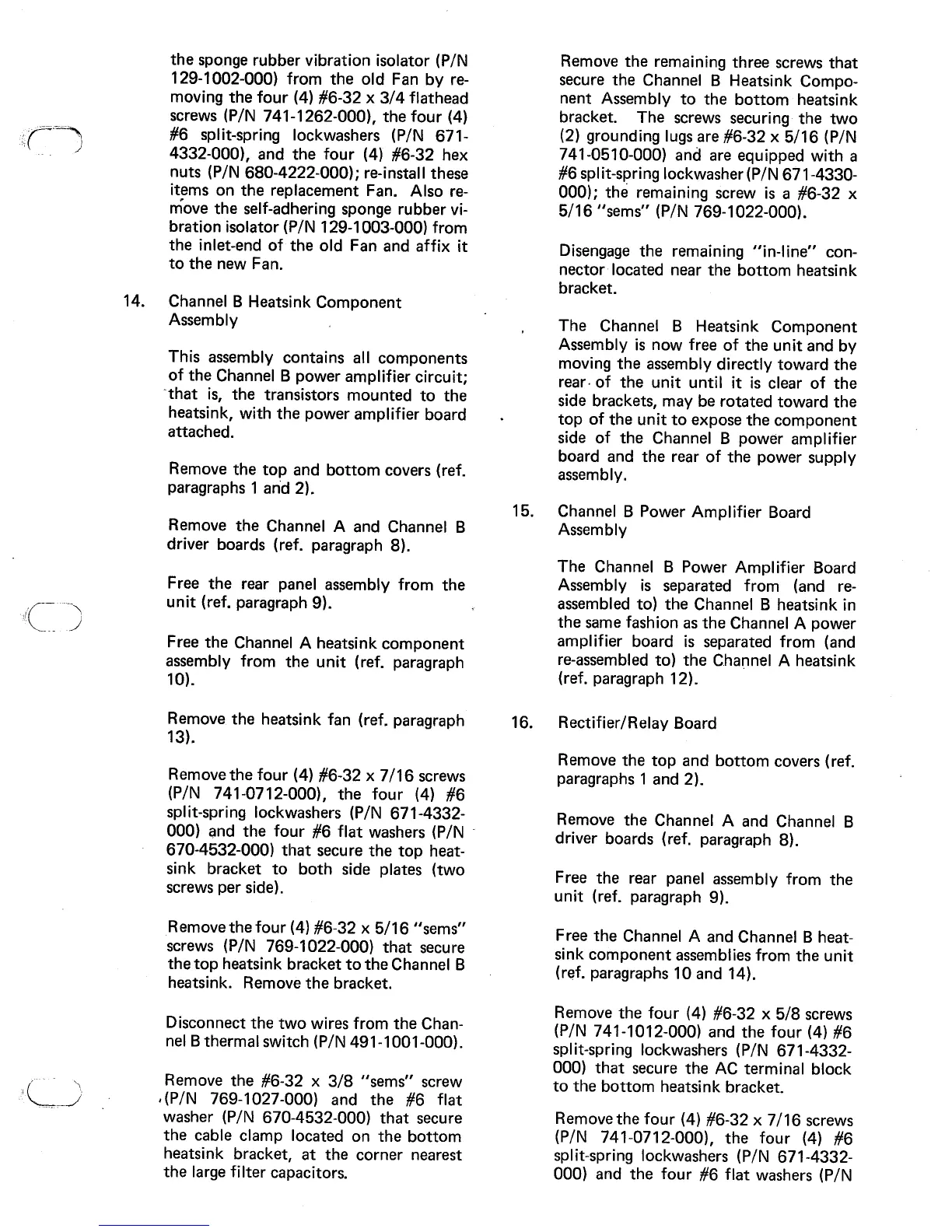 Marantz 500 - Service Notes - Disassembly (More Boards); Channel B Heatsink and Power Amplifier Board Disassembly; Rectifier;Relay Board Disassembly