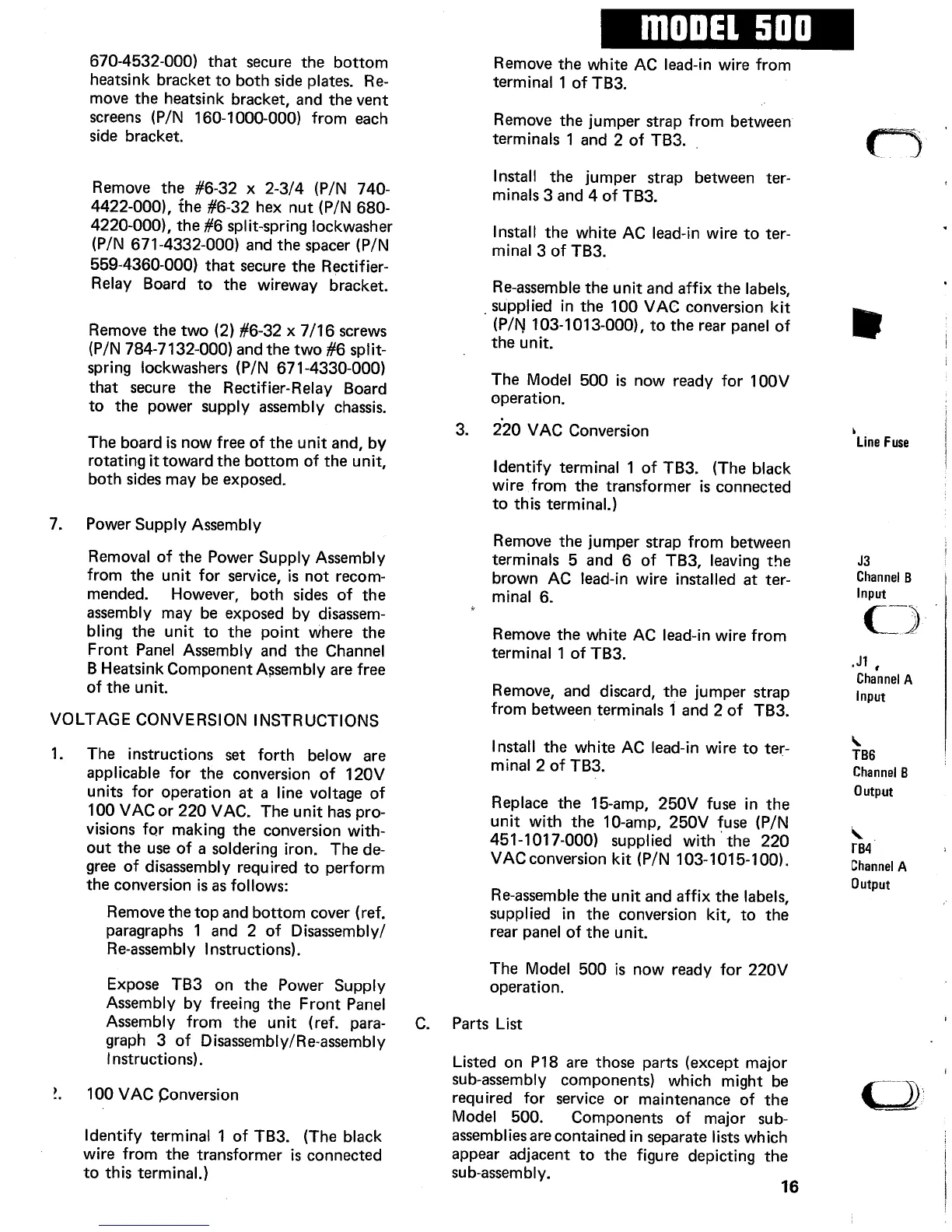 Marantz 500 - Voltage Conversion and Parts List; Voltage Conversion Procedures; Parts List Introduction