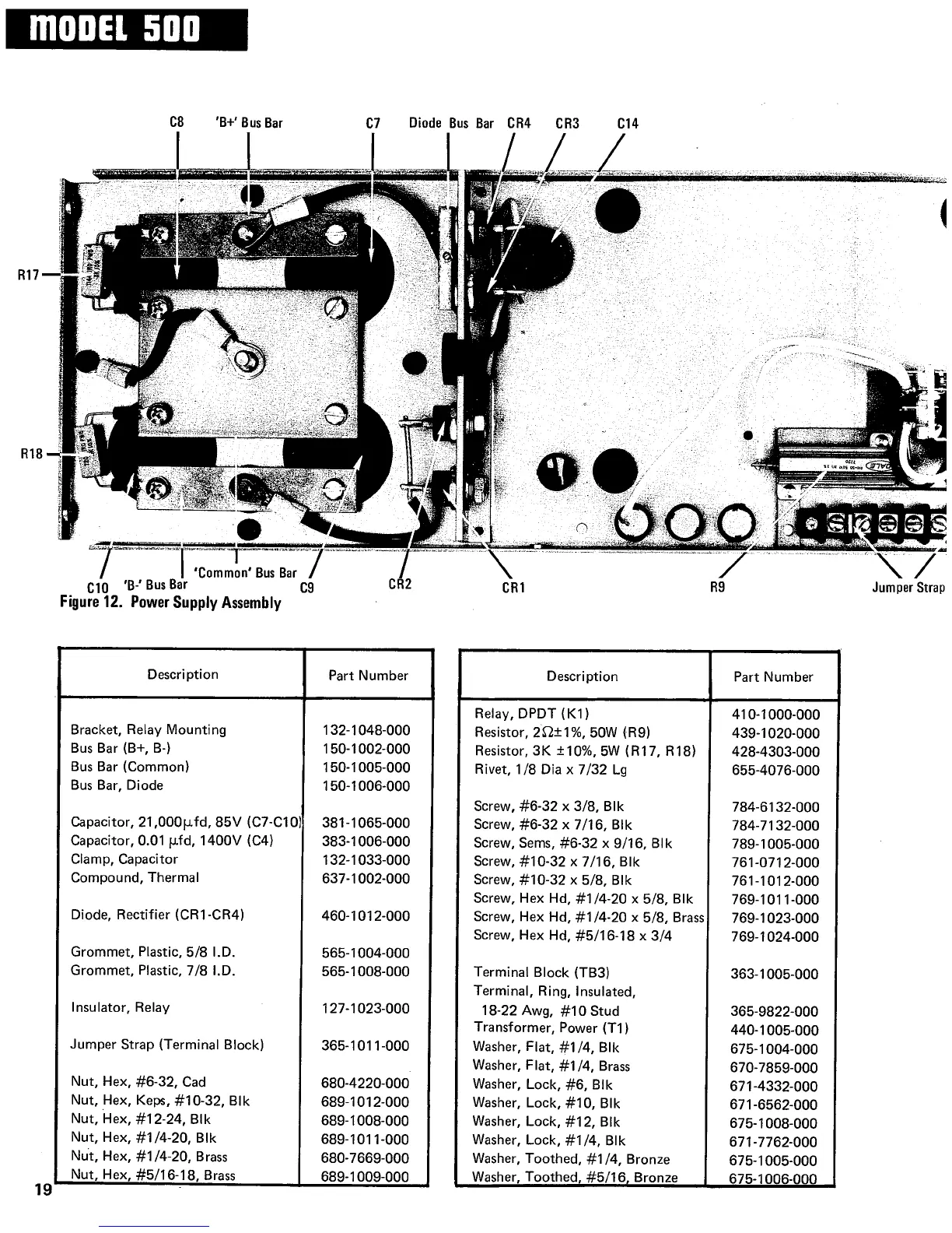 Marantz 500 - Power Supply Assembly Details; Power Supply Assembly Diagram and Parts List
