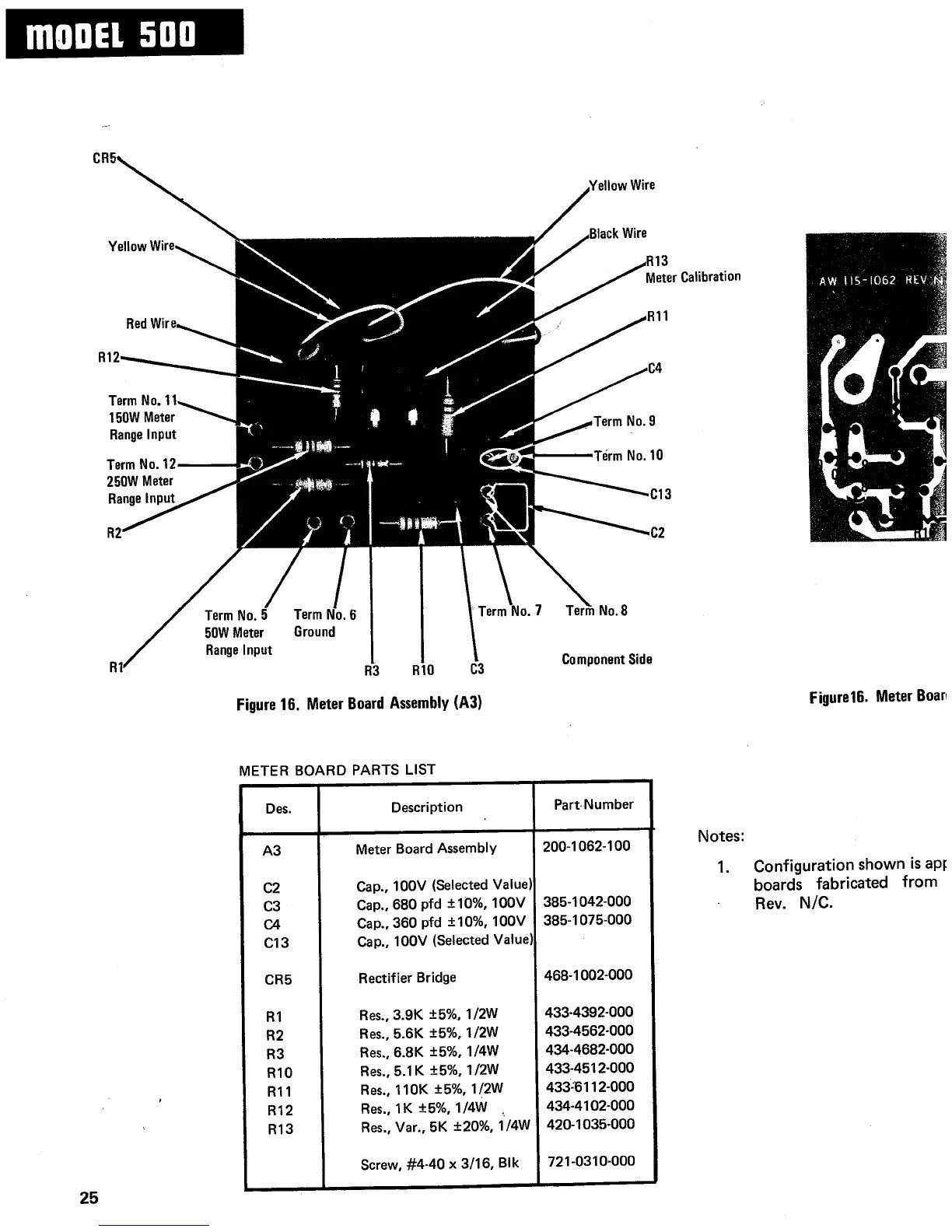 Marantz 500 - Meter Board Assembly Details; Meter Board Assembly Diagram and Parts List